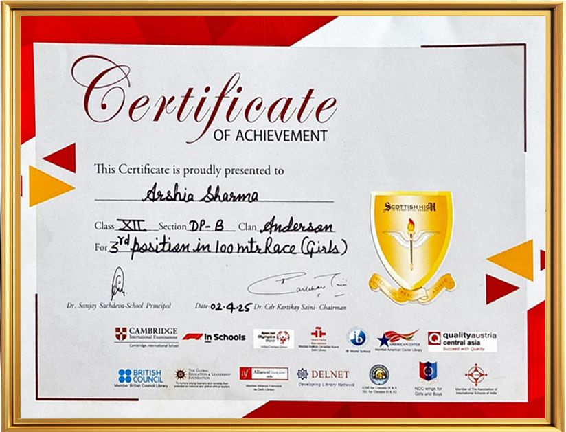 Individually showcased her speed and competitive spirit by securing 3rd place in the Interclan Girls 100m Race in 2025.