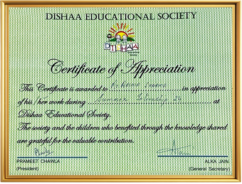 Volunteered as a tutor at Dishaa NGO, providing educational support to underprivileged children. Developed personalized learning strategies tailored to diverse student needs, build confidence, foster a positive learning environment, reflecting a commitment to community service and mentorship.